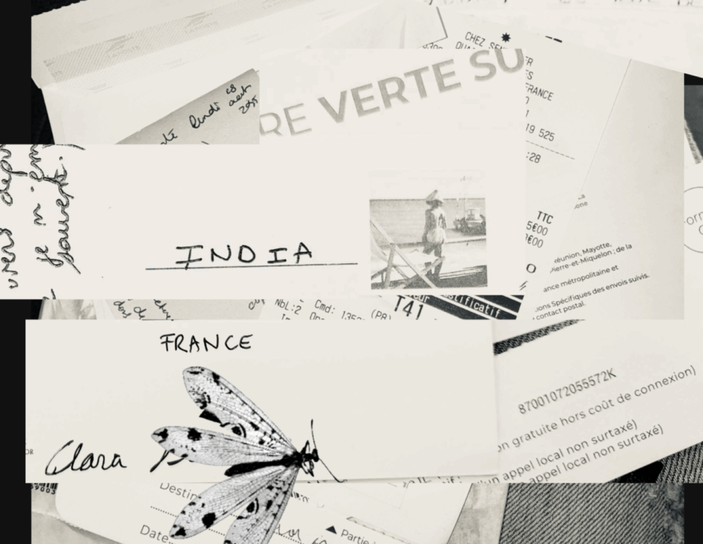 J’ai choisi une carte postale grise, nuances de platine doré, silvergold, pour India Lange. Depuis mes 18 ans, India me prend en photo ; elle possède sans doute le plus d’archives des années tourmentées, ainsi que des séances rares, réunies avec mon frère et ma sœur, les jumeaux, en 2023 et 2024. La photo n’est pas signée, seulement datée de 1940, la poissonnerie du port, derrière Sénéquier n’a pas changé. Et les photos d’India, cet œil semblable, cette chance du click, de l’instant d’après. India travaillera sur argentique ou pas, film ou photos : il y aura toujours chez elle l’un des déclencheurs les plus purs de la photographie, son œil même comme un objectif. Il est 11h39, et mes divagations débutent. Je traîne mes journées en éclatant les tâches en mille idées, et c’est ici que je m’attache le plus fidèlement à les raconter.