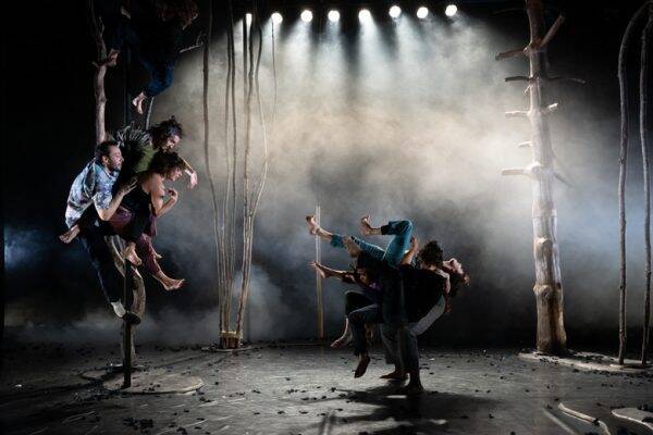 Des fragments de désir qui permettent de dresser un portrait exhaustif de notre besoin de séduction et de notre (nos) nature(s) amoureuse(s). Il y a celui et celle qui se regardent longuement sans se toucher à la cime des arbres, celui et celle qui passent leurs temps à se poursuivre, celui qui n’arrive pas à offrir son cœur (ou ses bois ?), ceux qui font un combat de tignasses, et encore plein d’autres bribes d’un discours du mouvement amoureux. Alternant entre des duos, des solos et des moments choraux, l’écriture chorégraphique est d’une grande beauté, entre rêverie vers l’imaginaire et puissance identificatoire du geste.