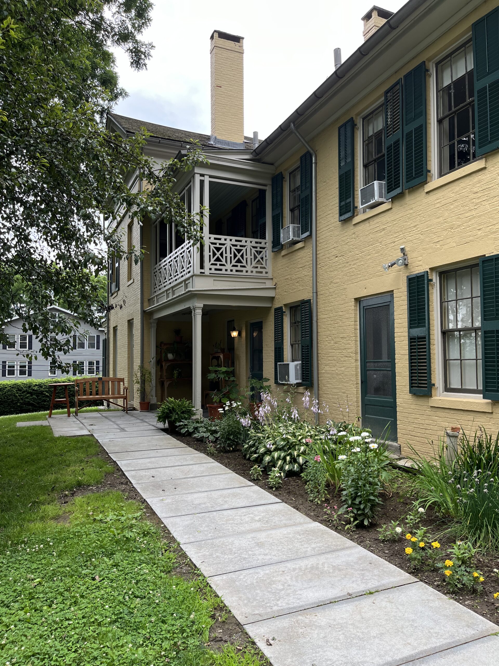 Considérée comme l’une des plus grandes poétesses américaines, elle a passé quasiment toute sa vie au 280 Main Street, à Amherst, dans une maison construite par son grand-père en 1813. Cette massive demeure jaune, aux volets verts, adopte le style colonial que nous avons déjà croisé à Concord, chez Henry David Thoreau. La propriété est entourée d’un terrain fleuri avec un potager et un chêne gigantesque, planté par Emily il y a près de 200 ans, que quatre humains pourraient tout juste enlacer pour des raisons qui leur appartiennent. Devenue un musée en 2003, la propriété se visite presque tous les jours, sauf le 4 juillet…