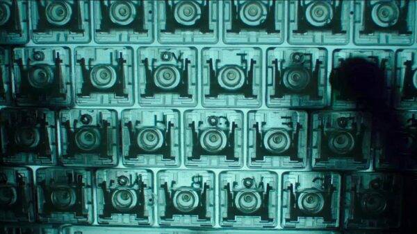 La notion de distance dans Hacker peut être résumée en un seul plan, l’introduction du film : une vue de la Terre depuis l’espace, passage obligé de tout film de science-fiction contemporain détourné par Mann. Cette planète balaye le monde physique tandis que des mouvements translucides la parcourent, formant sur sa surface une immense toile d’araignée. Il s’agit là de données virtuelles sillonnant le monde à une vitesse inatteignable pour la matérialité de l’homme – la distance n’est plus, seule reste une proximité factice entre les corps. Et à mesure que le cinéaste se rapproche, l’évidence même de la disparition de la nature se fait ressentir, supplantée par un espace urbain fait de câbles et de connexions, symbole d’une société ultra-connectée. En l’espace de quelques secondes, aussi rapidement que les données se propagent sur la Terre, l’œil du cinéaste joint l’infiniment grand et l’infiniment petit, s’engouffrant dans un ordinateur pour devenir lui-même une information numérique. Ce morceau de bravoure nous dévoile le trajet complexe du renseignement jusqu’à son réceptacle humain, ici une main (et non plus un homme) pressant le bouton d’un clavier. Cette simple pression, geste aussi quotidien que banal, provoque l’explosion d’une centrale nucléaire. La démarche de Mann tient tout entière dans cette unique scène : la proximité numérique et ses tragiques conséquences, la domination du monde virtuel sur le monde matériel.