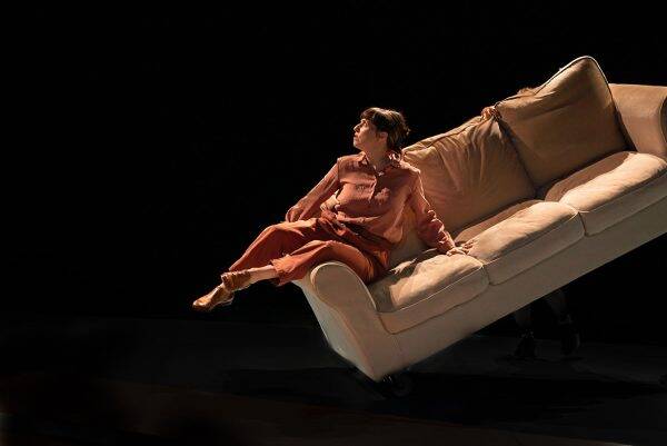 Sur le plateau : 3 comédien.ne.s et un beatboxer s’amusent avec les effets visuels et sonores pour créer une esthétique insolite au théâtre. Installé côté jardin, l’incroyable beatboxer (Julien Paplomatas) va accompagner tout au long de la pièce les comédien.ne.s d’effets sonores, qui, soutenus par les mouvements des acteur.ice.s ouvriront des parenthèses visuels à l’histoire. Par exemple, lorsque la mère (Marjolaine Minot) demande au fils (Florian Albin) comment se passent ses études, alors que celui-ci n’aspire qu’à arrêter, le dialogue est interrompu par l’image du jeune homme qui se noie depuis son canapé. Le beatboxer crée une ambiance sonore aquatique en live, ce qui transforme le glissement du comédien le long du canapé et renforce l’image. La scène est comme métamorphosée en un extrait de cartoon. Les effets visuels créent une ambiance dynamique et dynamitent le rythme traditionnel du théâtre. Nous sommes amené.e.s vers un ailleurs original et profondément créatif.